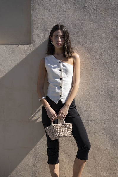 CHALECO SASTRE ASIMÉTRICO CON LINO