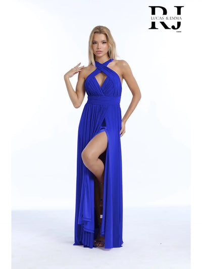 Vestido de noche largo con abertura y cuello en V