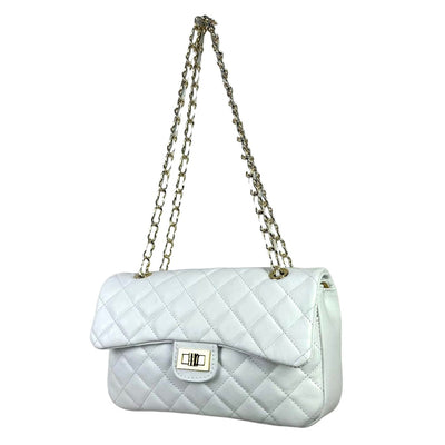 Bolso Piel Italiana con Efecto Brillante y Asa Extraíble de Cadena