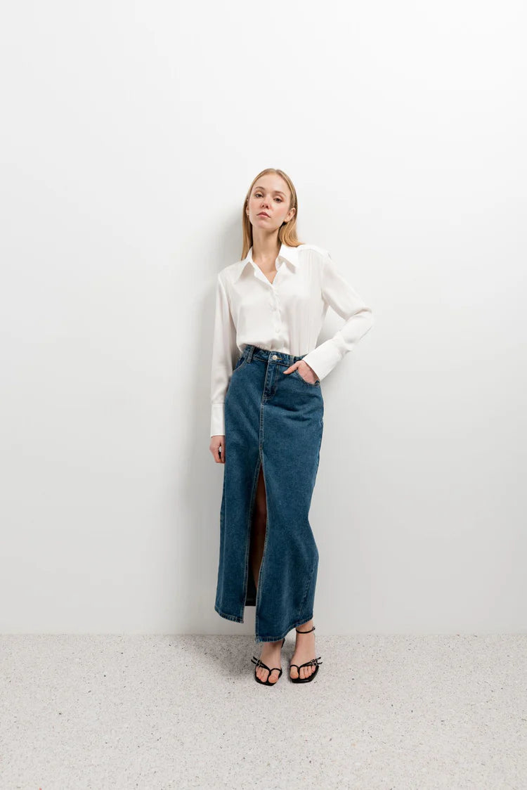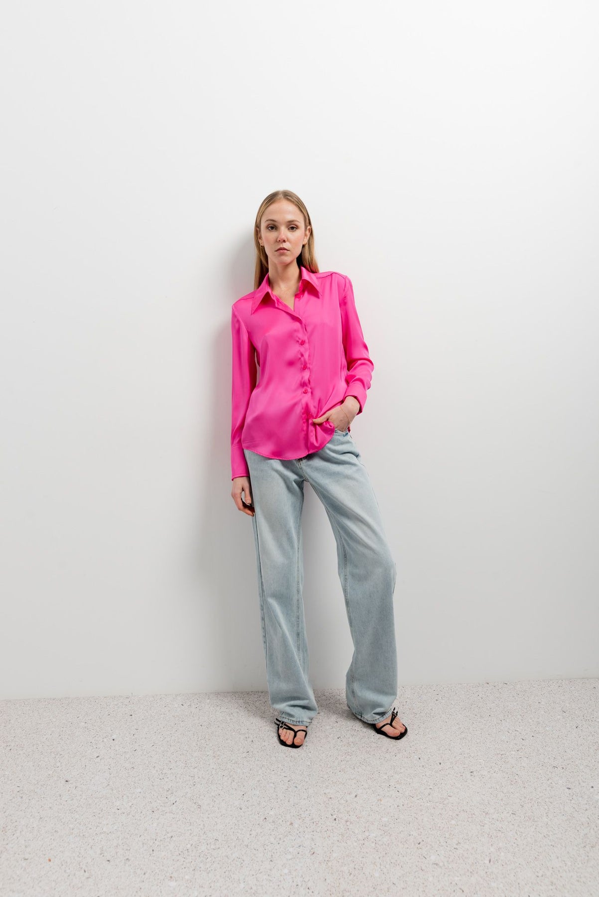 Envuelve tu piel en el suave encanto de la camisa satinada. Su brillo sutil refleja la luz del otoño, mientras su caída fluida acaricia cada movimiento con elegancia y sutileza. Perfecta para noches especiales o días donde el romance se viste de seda, es la prenda que transforma lo cotidiano en pura sofisticación.