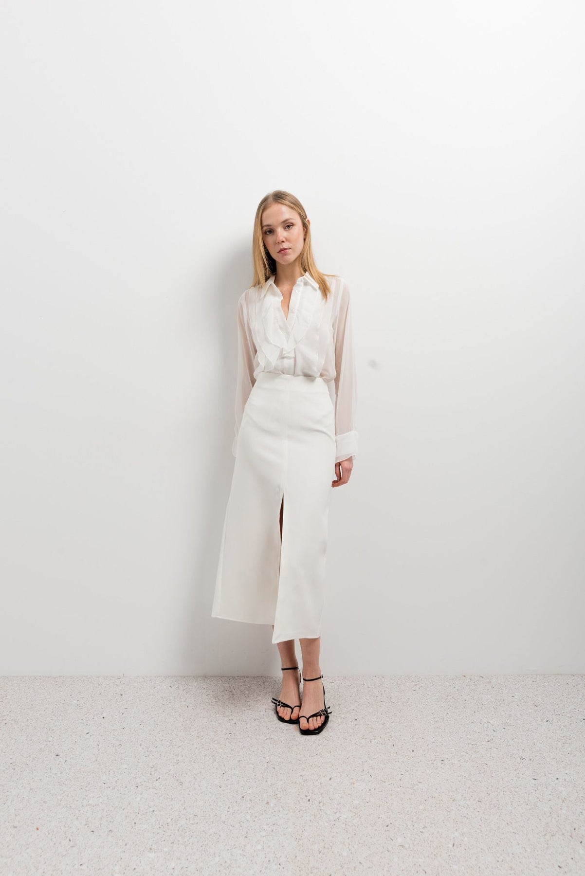 La Camisa de Volantes de la colección Otoño-Invierno 2025 es una oda al romanticismo y la feminidad. Sus delicados volantes acarician la silueta con movimiento suave, aportando un toque de elegancia etérea. Versátil y sofisticada, esta prenda transforma cualquier look, invitando a vivir momentos llenos de encanto y estilo sublime.