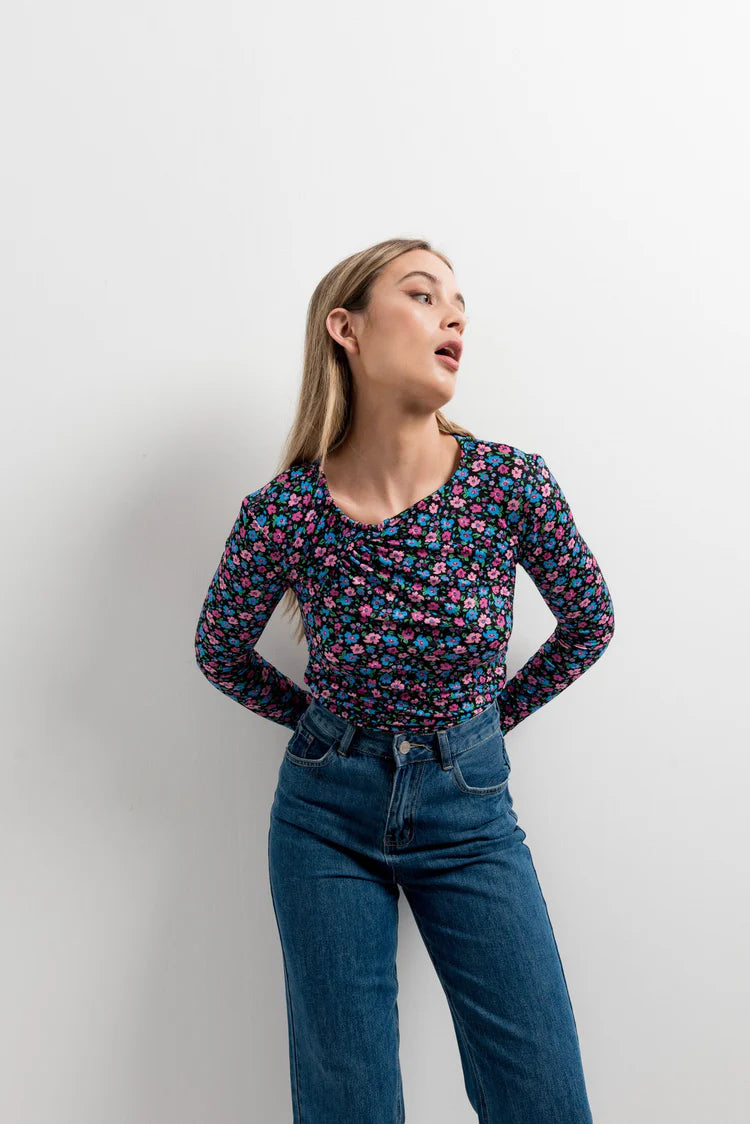 Auténtica y encantadora, esta camiseta con estampado asimétrico combina arte y estilo en una sola prenda. Su diseño fluido realza la silueta con naturalidad, mientras los estampados añaden un toque romántico y distintivo. Perfecta para los días de otoño en los que la elegancia se expresa con color, movimiento y personalidad.
