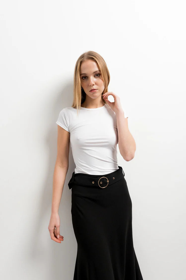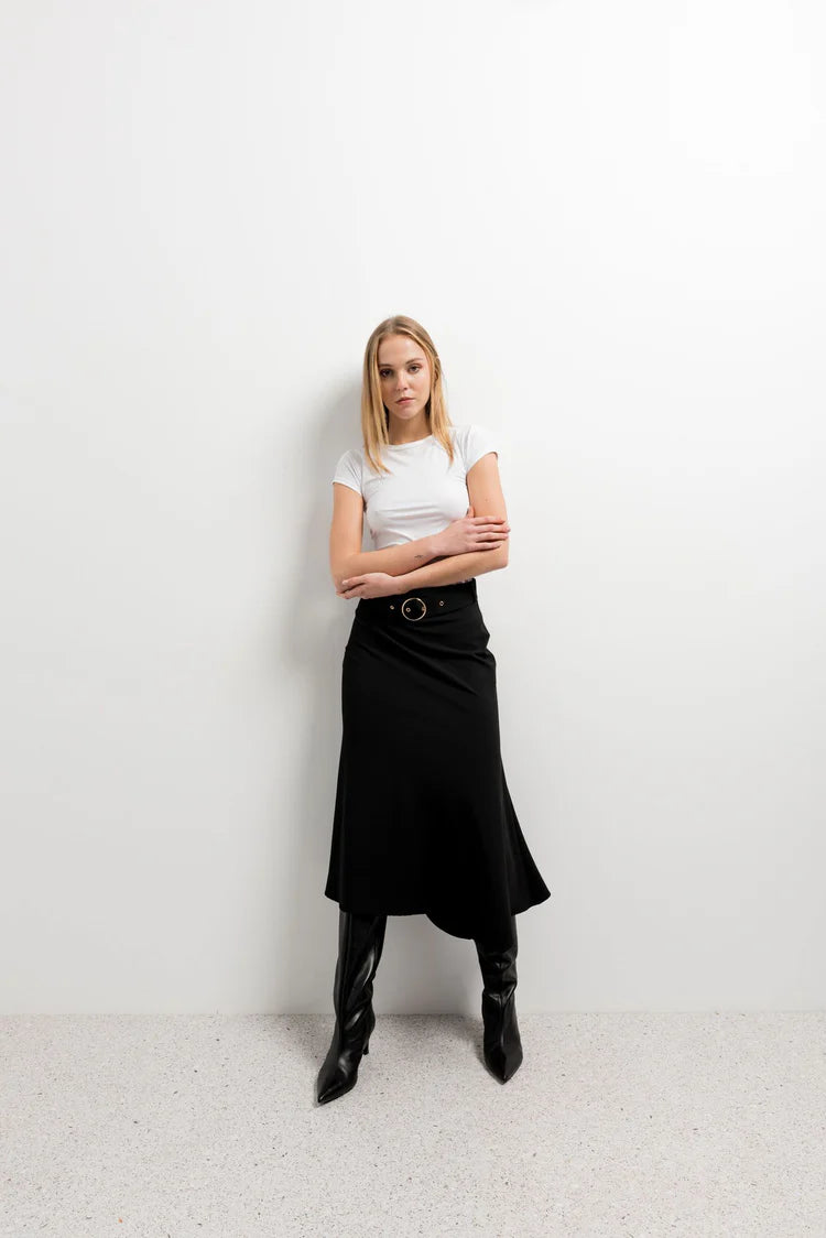 La falda midi con cinturón celebra la silueta femenina con elegancia y delicadeza. Su diseño fluido se ajusta con suavidad a la cintura, resaltando la figura con un toque romántico y sofisticado. Perfecta para cualquier ocasión, combina comodidad y estilo, convirtiéndose en el imprescindible ideal para un otoño e invierno de encanto y distinción.