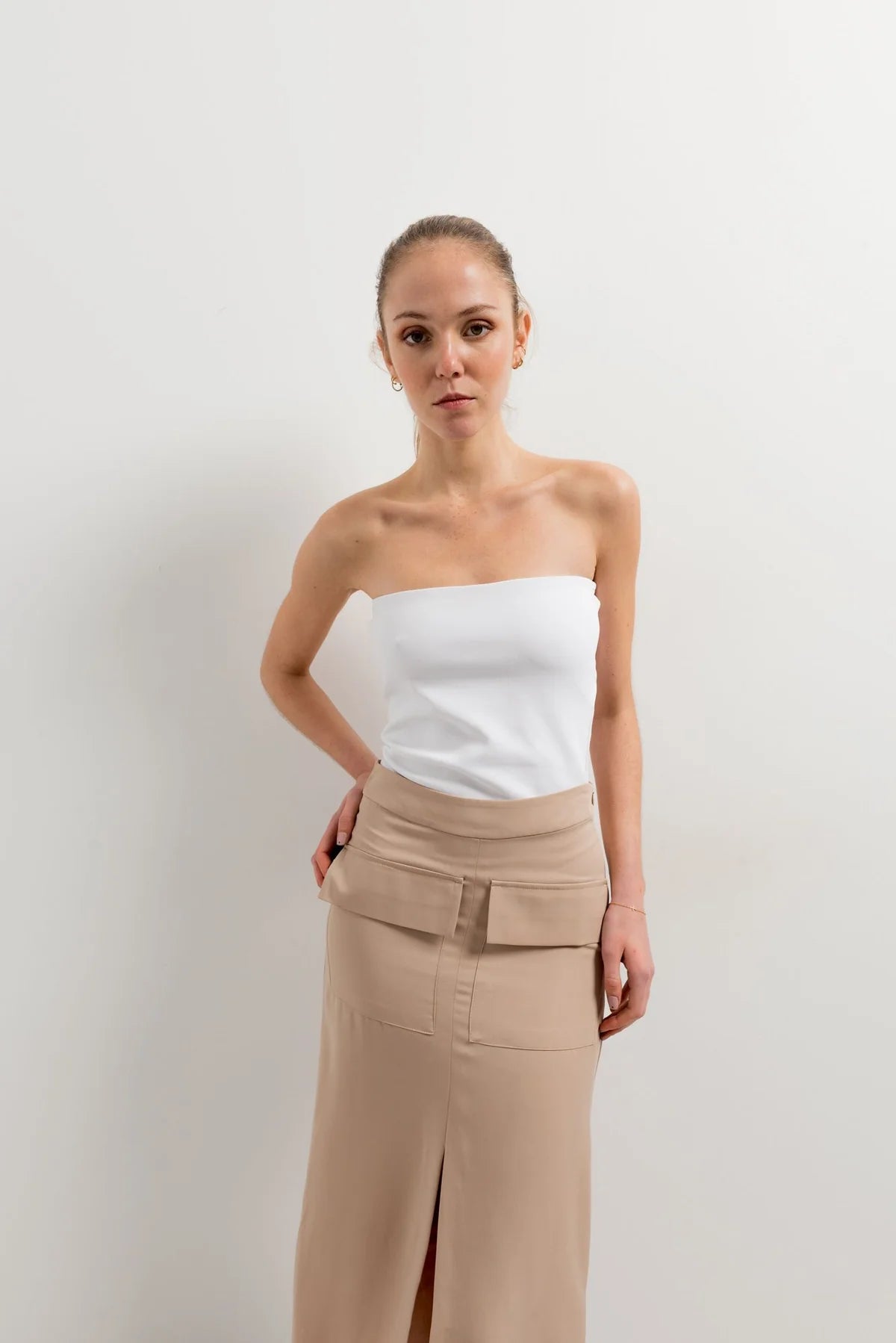 La falda midi cargo combina esencia urbana y encanto sofisticado en una silueta moderna y femenina. Su diseño estructurado resalta la figura con elegancia natural, mientras los detalles cargo aportan carácter y autenticidad. Ligera y cómoda, es la prenda ideal para un otoño e invierno versátil, donde el estilo se vive con confianza y delicadeza.