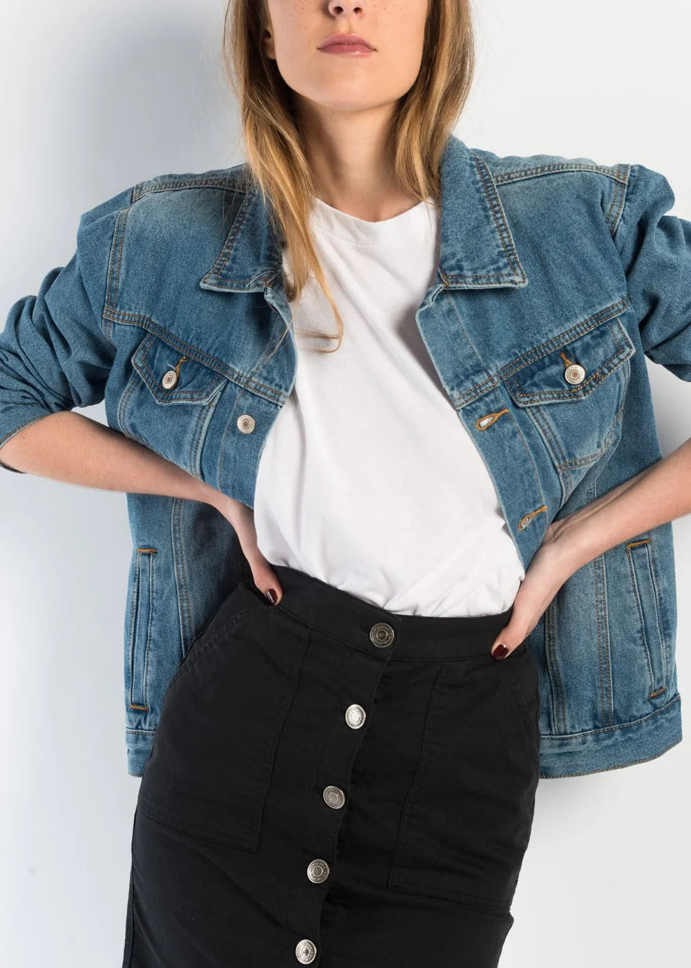 La Falda Midi con Botones combina estilo y practicidad en una prenda imprescindible de temporada. Con un corte midi elegante y versátil, se adapta perfectamente a distintos momentos del día, desde un look casual hasta uno más formal. Los botones frontales aportan un detalle distintivo y moderno, mientras que su confección en 50% algodón, 45% poliéster y 5% elastano ofrece suavidad, resistencia y un ajuste cómodo. Una falda atemporal y versátil que realza cualquier outfit con un toque actual.