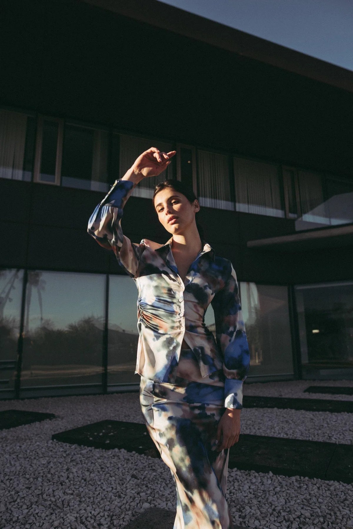 La falda midi estampada danza con cada paso, envolviendo la silueta en ligereza y encanto romántico. Su corte elegante realza la figura, mientras el estampado moderno añade personalidad y frescura. Versátil y femenina, es la compañera perfecta para un otoño e invierno donde la sofisticación se viste de movimiento y estilo atemporal.