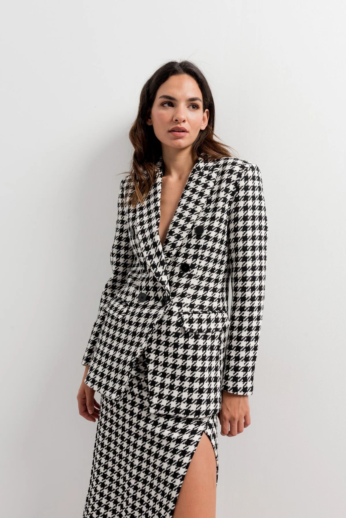 La falda midi pata de gallo celebra la elegancia eterna con un toque romántico y distinguido. Su corte favorecedor realza la silueta, mientras el emblemático estampado aporta sofisticación y carácter. Suave y cómoda, es la pieza perfecta para un otoño e invierno lleno de estilo clásico, versatilidad y encanto atemporal que nunca deja de enamorar.