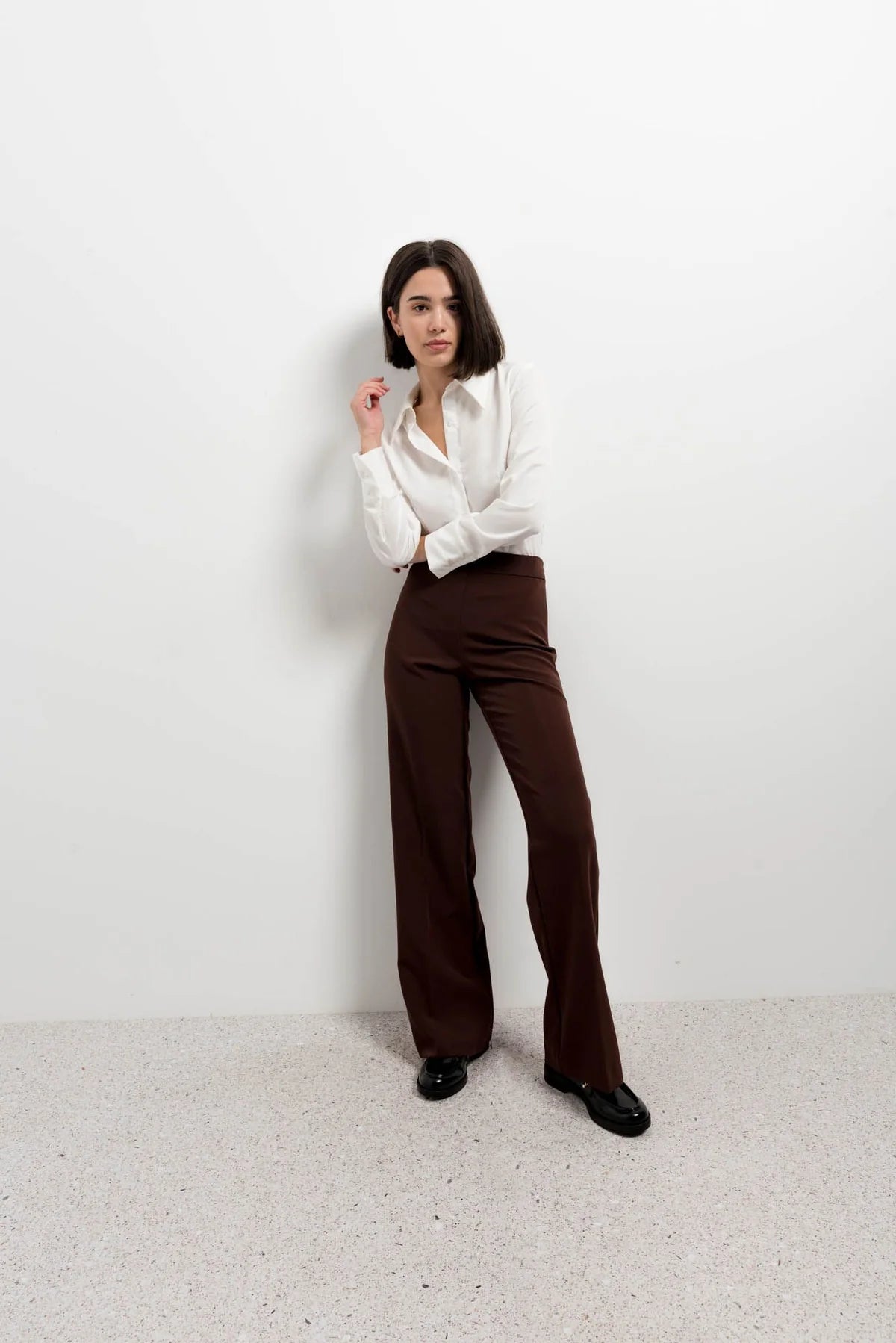 Este pantalón de longitud completa una elegancia y comodidad en una silueta eterna. Su corte recto y largo impecable alargan la figura con sutileza, mientras su tejido suave se adapta al movimiento con naturalidad. Perfecta para el otoño invierno, es la prenda que celebra la feminidad moderna con un romanticismo sereno y cómodo.