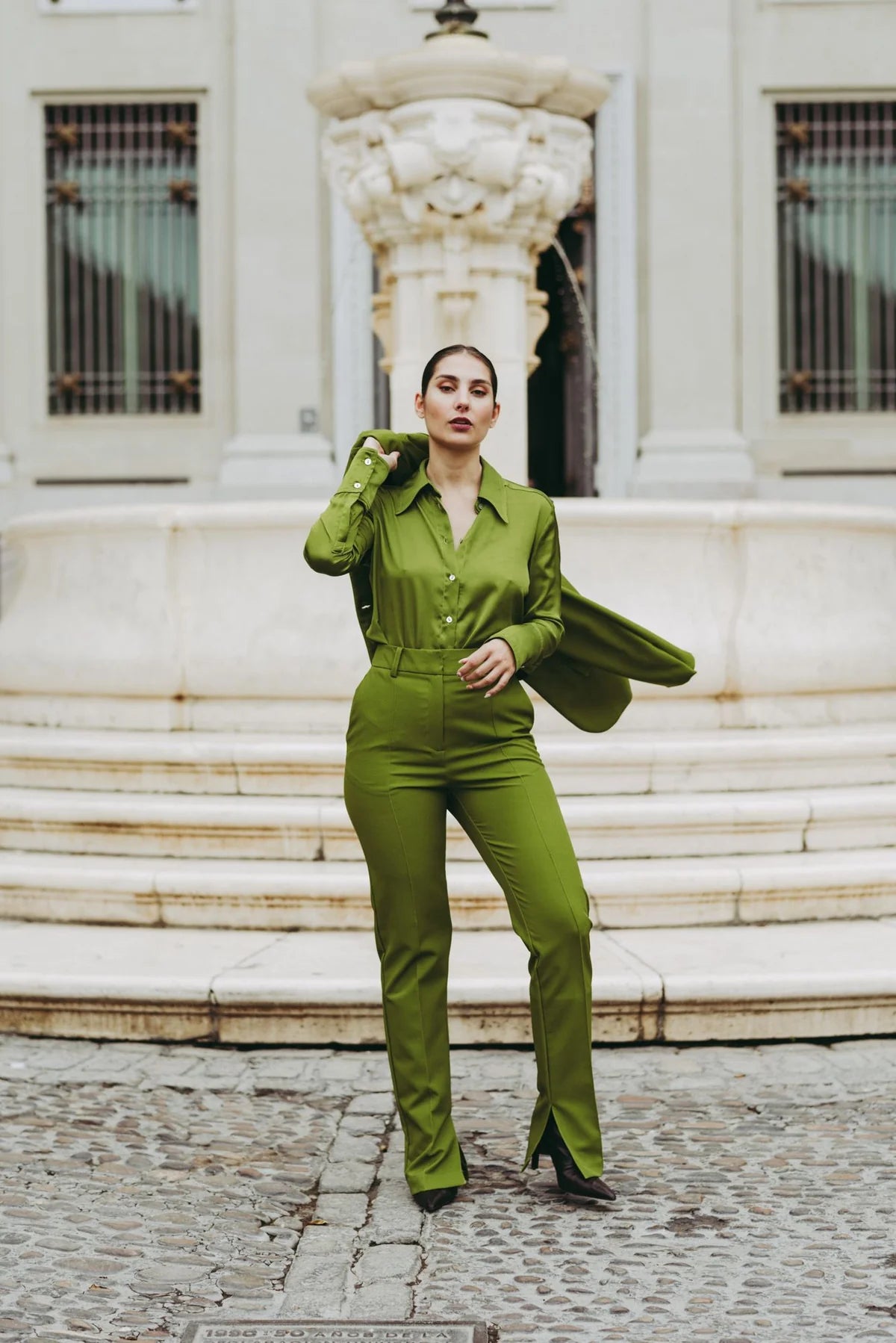 Este pantalón de aberturas laterales seduce con su elegancia audaz. El corte recto y los delicados detalles en los costados crean un juego de movimiento y misterio, realzando la silueta con sofisticación. Perfecta para el otoño invierno, es la pieza versátil que combina modernidad, confort y un romanticismo atrevido que no pasa desapercibido.