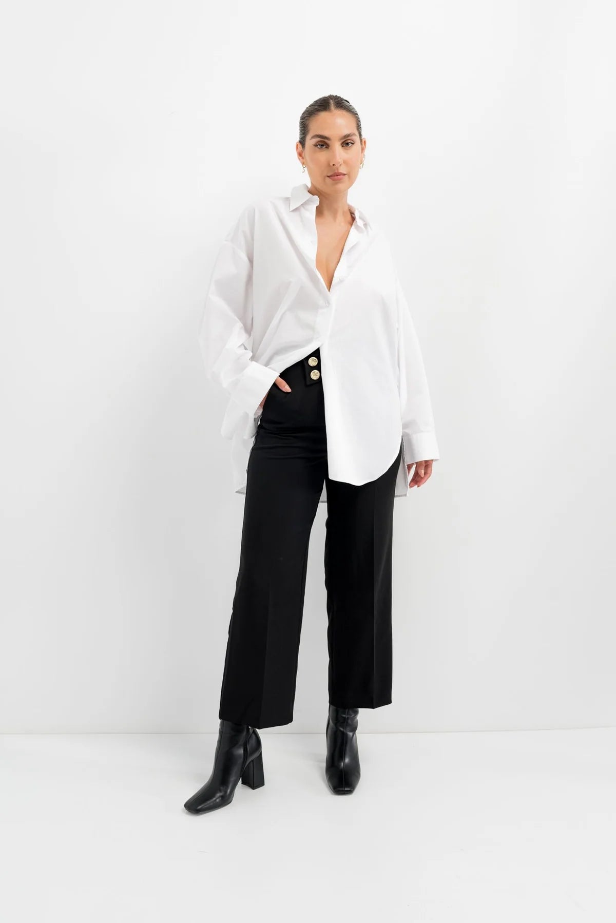 Envuelve tus días de otoño en elegancia y comodidad con este pantalón cropped de botones dorados. Su corte al tobillo y silueta sutilmente entallada resaltan tu figura con delicadeza natural. El tejido elástico abraza tus movimientos con suavidad, mientras los destellos dorados añaden ese toque romántico y moderno que ilumina cualquier look.