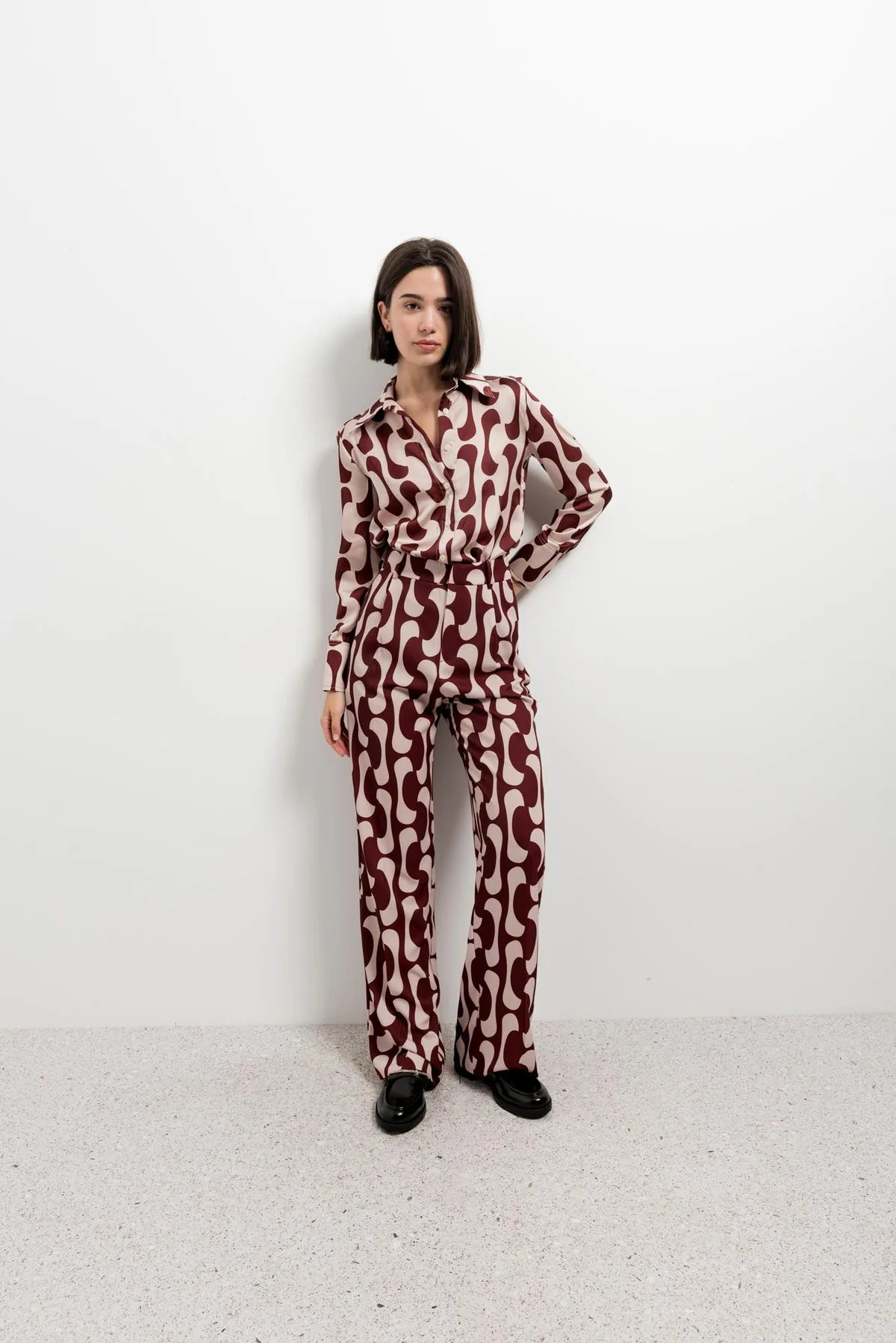 Este pantalón estampado irradia encanto y sofisticación con un toque romántico. Su tejido ligero y elástico abraza la silueta con suavidad, ofreciendo libertad y elegancia natural. El diseño estampado aporta personalidad y frescura, perfecto para el otoño invierno. Una prenda versátil que convierte cada look en una expresión de estilo y feminidad única.