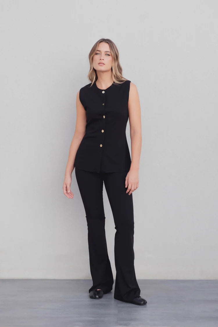 El Top Chaleco Abotonado de Punto con Cuerpo de Lino de la Colección Otoño-Invierno 2025 es frescura y sofisticación en una sola prenda. Su diseño sin mangas y escote en pico estilizan la figura con elegancia, mientras los botones frontales añaden un toque clásico. Ligero y cómodo, es un básico atemporal para combinar con jeans, faldas o shorts con estilo.