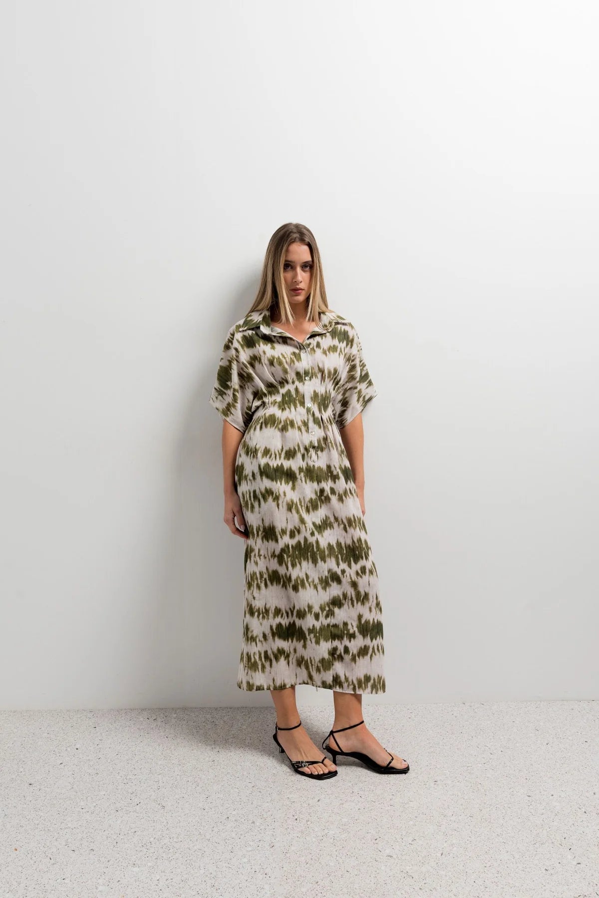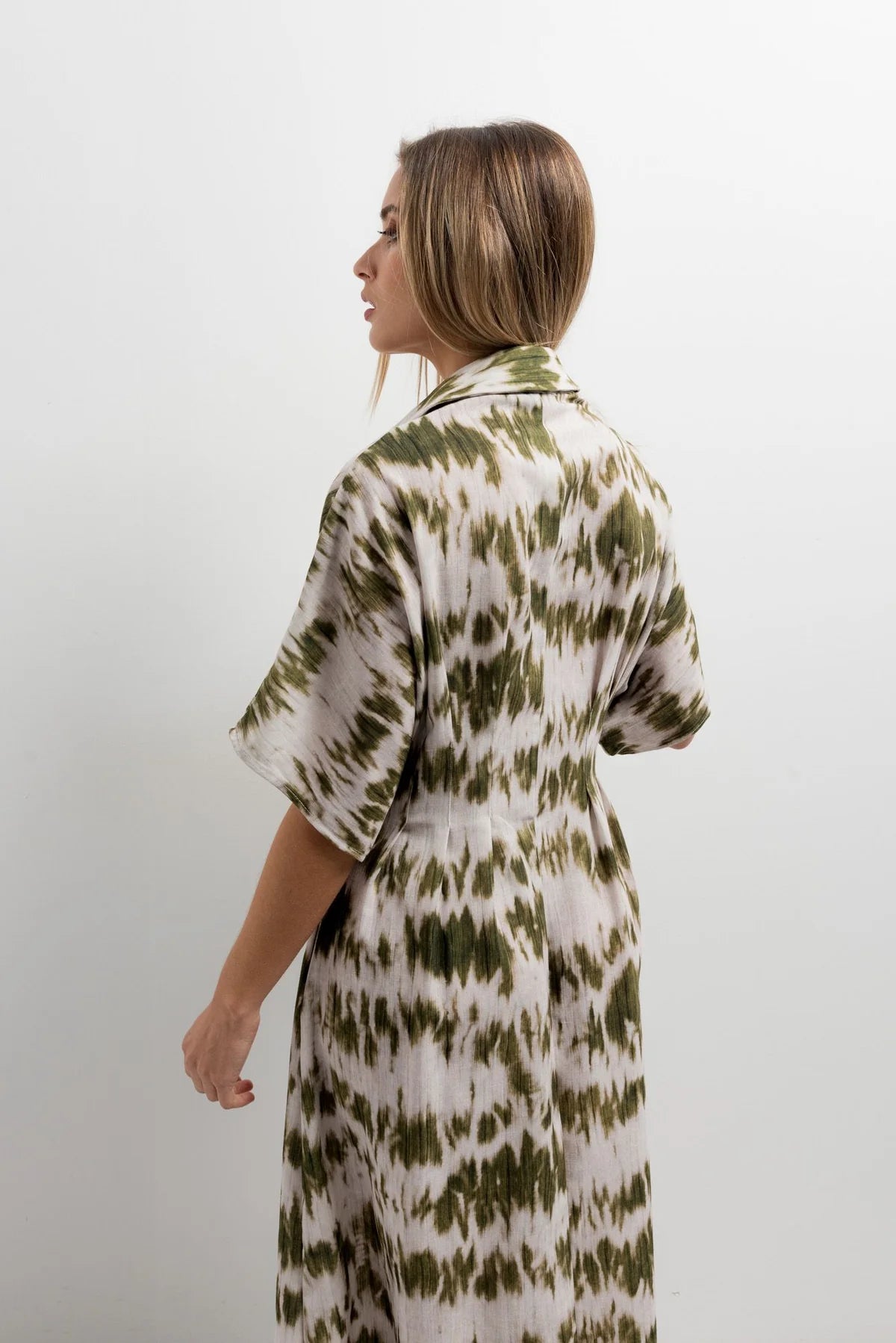 Dale nueva vida a tu estilo con este vestido camisero estampado. Su diseño clásico se fusiona con un estampado lleno de personalidad, creando un look moderno y romántico. Ligero y fluido, acompaña tu silueta con frescura y elegancia natural. Versátil y encantadora, es la prenda ideal para brillar con sofisticación en cualquier momento del día.