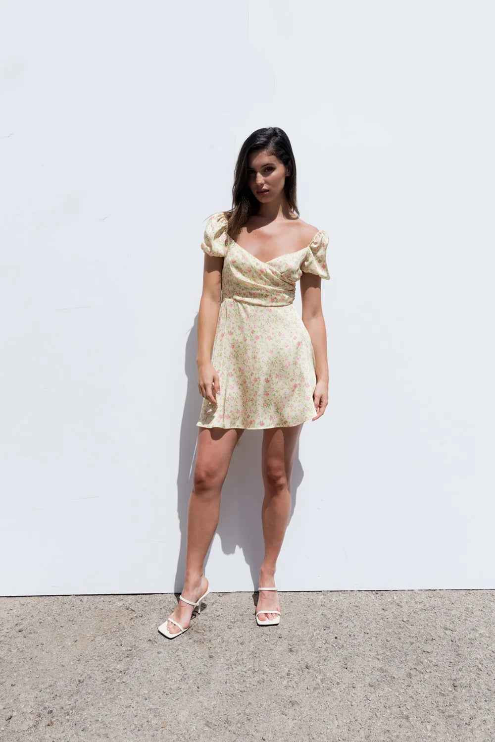Haz brillar tu esencia con este vestido cruzado de flores amarillas. Su diseño realza la silueta con elegancia natural, mientras que el estampado floral transmite alegría y frescura en cada detalle. Ligero y fluido, acompaña tus pasos con gracia romántica, convirtiendo cualquier día soleado en una ocasión especial en un instante lleno de encanto y feminidad.