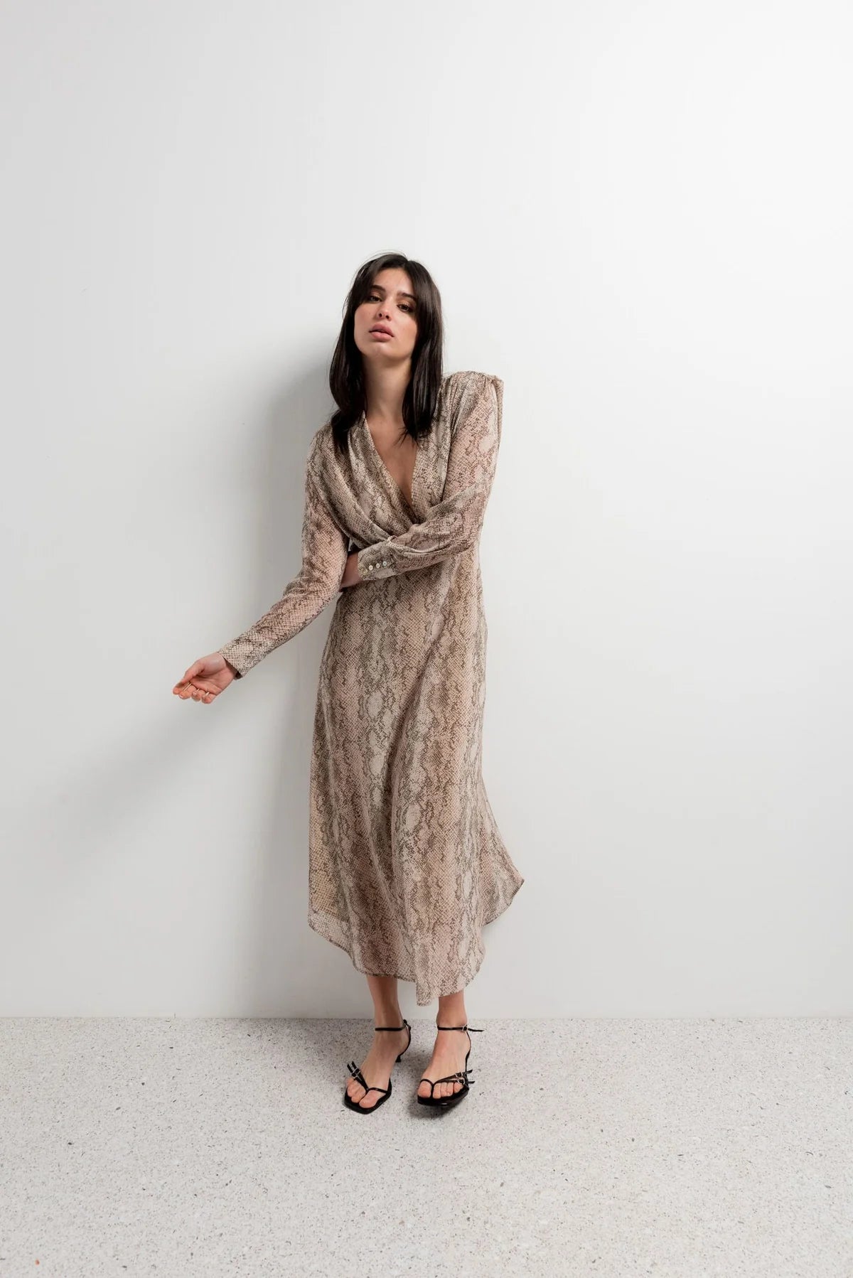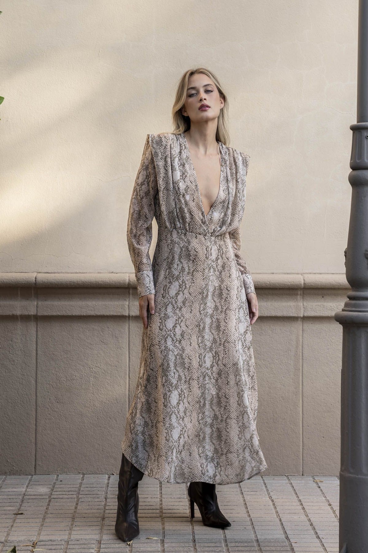 El Vestido de Gasa con Estampado Animal seduce con su ligereza y un aire romántico que combina frescura y sofisticación. Su caída fluida envuelve la silueta con gracia, mientras el estampado animal añade un toque atrevido y moderno imposible de ignorar. Versátil y elegante, es la prenda ideal para brillar en ocasiones especiales o elevar tu estilo diario.