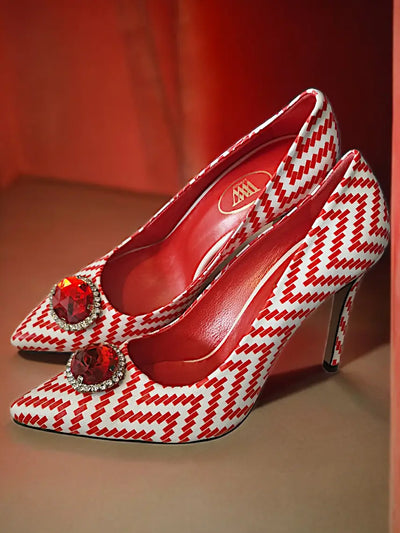 Estampado de piel a rayas rojas con adorno Tacones de aguja