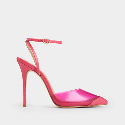 Zapato Stilettos Ariel rosa de piel con vinilo.