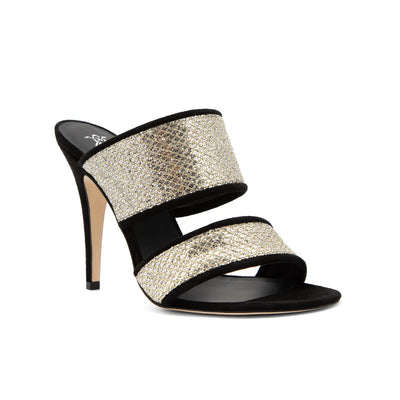 Sandalia Mery Tejido Oro Plata Gamuza Negro 110mm