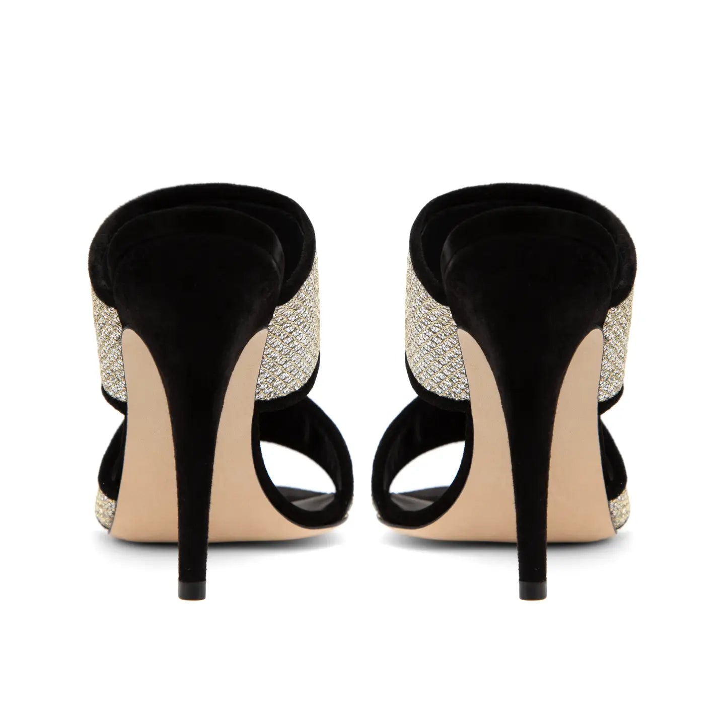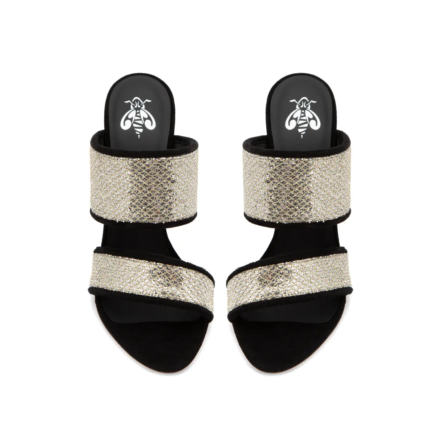 Sandalia Mery Tejido Oro Plata Gamuza Negro 110mm
