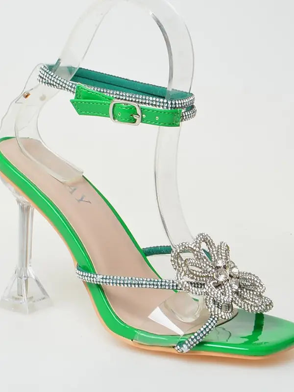 Luce sofisticada y a la moda con nuestra sandalia de tirantes, hecha en España y disponible en vibrantes colores. Su diseño elegante, con tacón transparente y finos tirantes adornados con cristales, resalta cualquier look de fiesta o evento especial. El detalle floral en la parte delantera añade un toque de glamour y feminidad. Ideales para destacar en celebraciones, estas sandalias ofrecen confort y estilo en cada paso. Elige tu color favorito y brilla en cada ocasión.