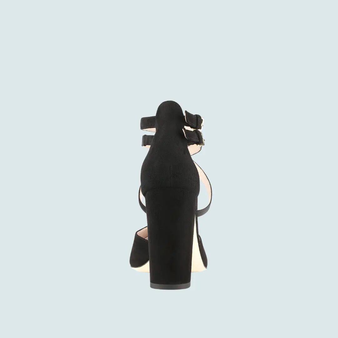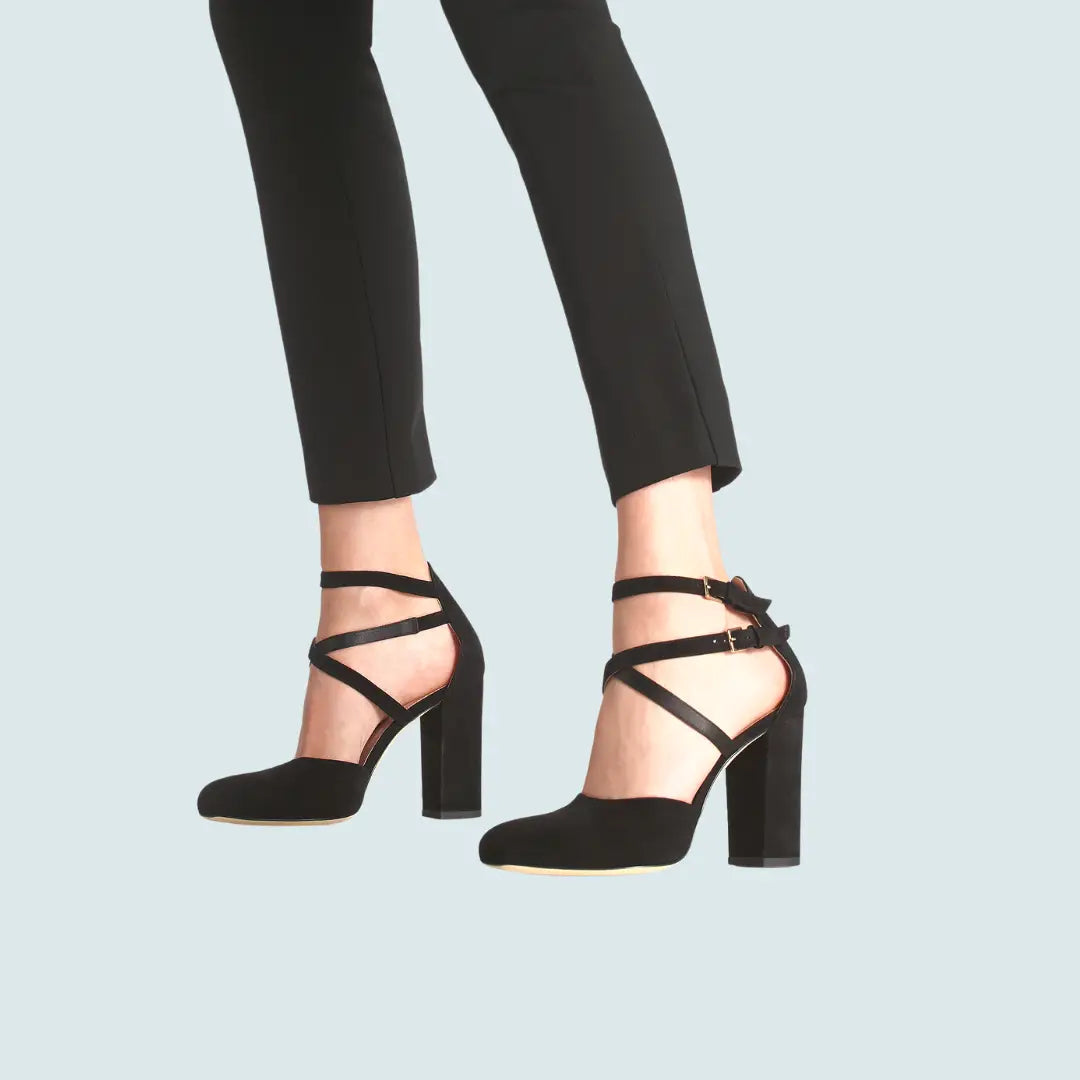 ZAPATO TERCIOPELO NEGRO CON CORREAS CRUZADAS DE SATÉN